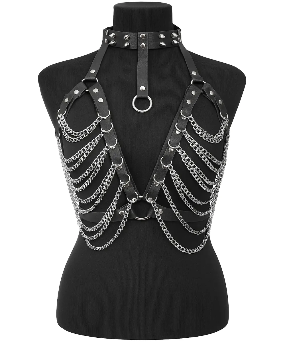 Unleash your dark aesthetic with the Black Chain Harness by Demonyx, a statement gothic accessory designed to command attention. Made with durable black faux leather and adorned with multiple silver metal chains, this harness brings a powerful balance of rebellion and sophistication.